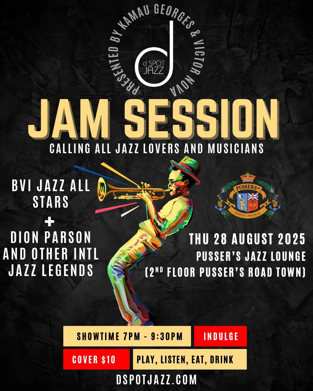 This event features a cast of BVI Jazz All Stars, as well as some top tier international jazz guest musicians. Dion Parson (drums) and Melvin Jones (trumpet) will pop in to share wisdom on what it’s like building a career in music and performing with everyone from Jon Faddis to Usher.